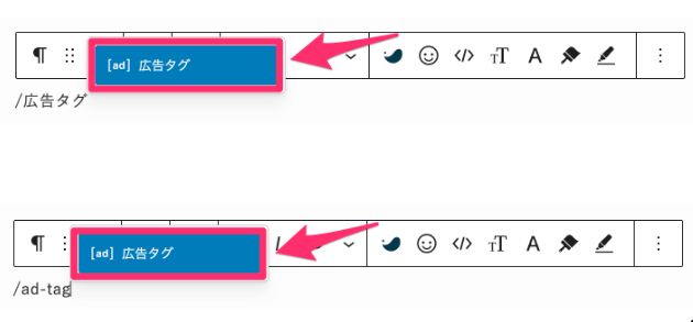 テキスト型の広告タグは、ショートコードを使って呼び出します。