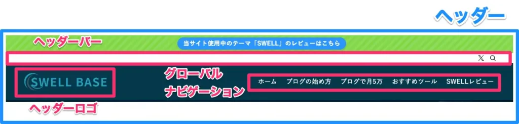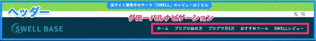 SWELLの設定を進める前に、まず整理しておきたいのが「ヘッダー」と「グローバルナビ」の違いです。