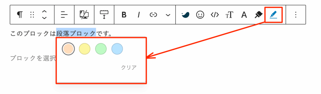 ブロックツールバーを使うと、テキストに装飾をかけることができます。